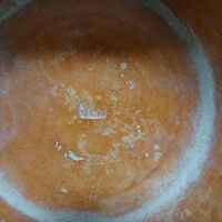 - flaring rim. Shiny slip. Floor stamped: (LAT..OSI..?)