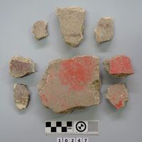 - Several pieces of painted plaster. Red