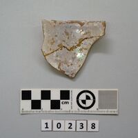 - Fragment of thin glass pot with straight rim. Yellow.