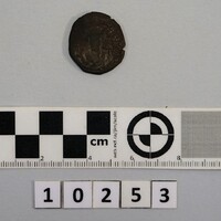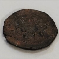- Obverse: frontal bust with left hand raised holding an object; cross right. Reverse: Two Xs with with star below.