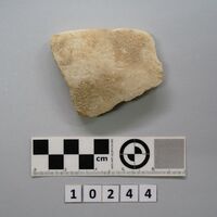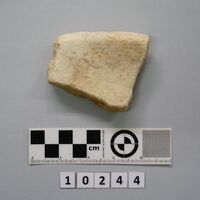 - Fragment of a marble vessel (?). White. Traces of color inside.
