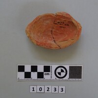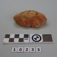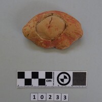 - upper part missing. Hollow and finished bottom. Zoomorphic? Human bust?
