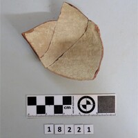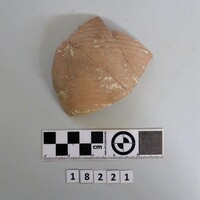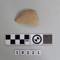 - Two body fragments of thin-walled pot. Wheel marks on exterior.