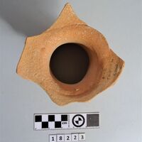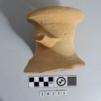- Thick and rounded rim and neck of a one-handled jar