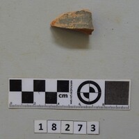 Small curved body fragment with black slip on exterior. Traces of glue. - Specimen Count