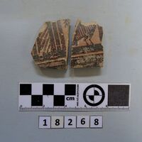 - containing mostly lekanai and open shapes. Two joining fragments with a bird pattern (heron).