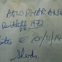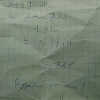- with green and brown decorative elements. Vertical hatching in relief. Ridging on interior.