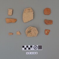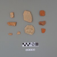 - Sherds of various shapes including cooking pots and jars or jugs. Decoration include dark-on-light painting (bands).