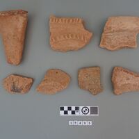 - jugs and bowls. Decoration includes monochrome painting and reliefed decoration (rope decoration).