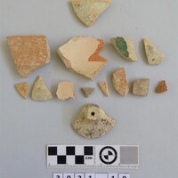 - probably late Roman/Byzantine. Includes one sherd with green glaze and plain ware.