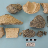 - pne polished green stone and six stone vessel fragments.