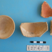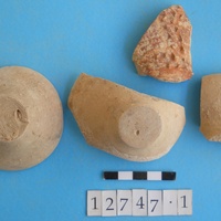 - Three conical cups; profile. And one barbotine bodysherd.