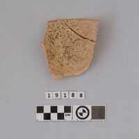 - Fully preserved profile of a straight-sided cup decorated with white dots.