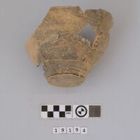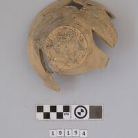 - Lower half of a jug. Piriform body. Monochroe painting on the outside.