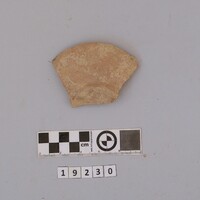 - Half preserved conical cup with soot deposit on rim indicating use as a lamp.