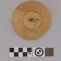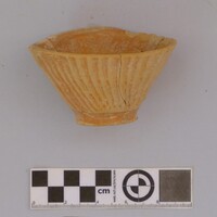 - One complete conical cup. Ripple-shell painted in brownish on the outside. Monochrome brownish painting on the inside.