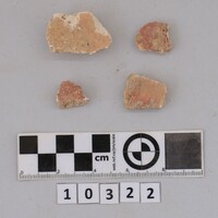 - Fragments of plaster painted red.