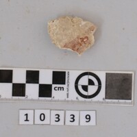 - Fragment of a curved wall plaster with traces of black and red paint.
