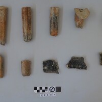 - Four joining sherds of a MM III bowl and feet of pots or maquette
