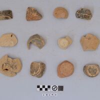 - piriform) and cooking pots. One MM I egg cup. Decorations include monochrome painting