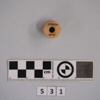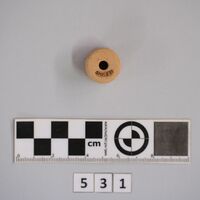 - One complete cylindrical perforated clay object (spindle-whorl?).