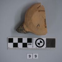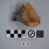- Fragmentary lamp. About half preserved. Dipped in brown paint around the nozzle.