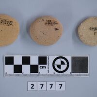 - Three sherds catalogued as counters. Probably reused as tools. One plain and pinched buff clay; one plain and yellow-buff clay; one showing edge of black band.