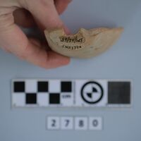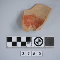 - Fragment of conical cup. Full profile preserved with traces of ochre pigment in the lower half of the inner surface.