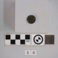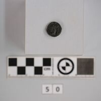 - Bronze coin. Two male busts on the observe and unidentified scene on the reverse.