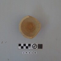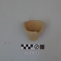 - Incomplete conical cup. Black monochrome and one incised line as decorations.