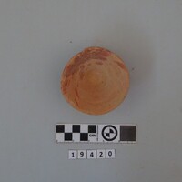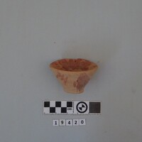 - Complete conical cup in reddish frabric. Red splashes as decorations.