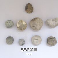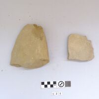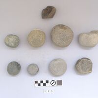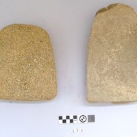 - Stone grinding tools including querns and grind stones. One quern fragment with chipping indicating possible use as a tool.