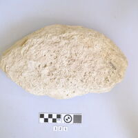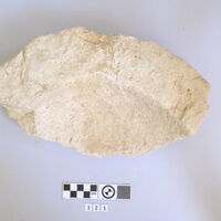 - Fragment of table for offerings about a third preserved of bowl with flat rim.