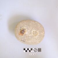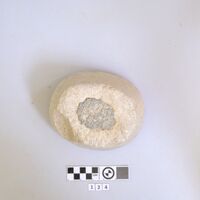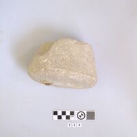 - Limestone weight with traces of lead plugs.
