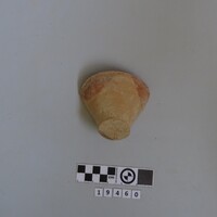 - One incomplete straight-sided cup with red full semi-circles on the rim.