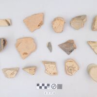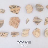 - plate and neck of an amphora. Decoration include incised patterns (chevrons