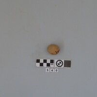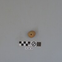 - One globular loomweight perforated through one half. Chipped. 31 g. D.C.0.035.