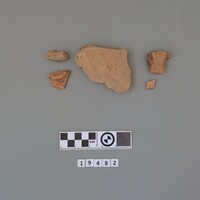 - Sherds of various shapes including cups and jars. Decoration includes dark-on-light painting.