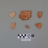 - Sherds of various shapes including cups and cooking pots. Decoration includes dark-on-light painting (bands).
