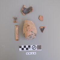 - Olpe in three recomposed joining pieces with complete profile through handle but small gaps in wall