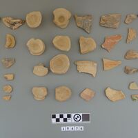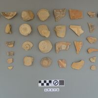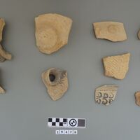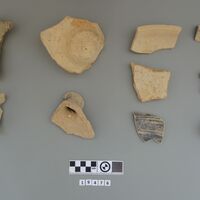 - juglets and pithoi. One modern sherd. Decorations include monochrome and dark-on-light painting (diamonds