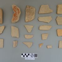 - Sherds of various shapes including bowls (deep bowl with flaring rim)