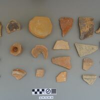 - eggstands and bones. Decoration includes monochrome and light-on-dark (bands) painting. One sherd possibly comes from Iron Age.