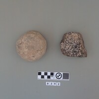 - Fragment of stone tool or architetural object and hematite corner of an object.