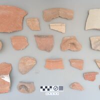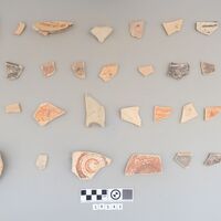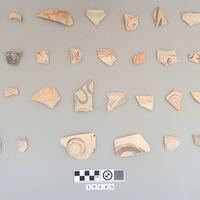 - cooking pots and kalathoi. Decorations include dark-on-light painting (bads