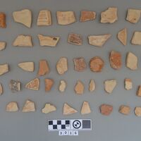 - Sherds of various shapes coming from different contexts. Bag of context Sel T3 1968 May 25 ^1 Fill of Dromos contains cups