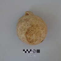 - Recomposed incomplete jug; half of the rim and adjacent missing. Pale pink clay