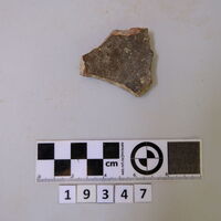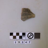 - Sherd in micaceous fabric. Light-on-dark bands and spirals.