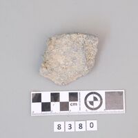 - Fragment of rim and wall of stone vase. Parallel grooves on the rim.