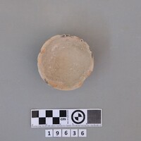 - Complete conical cup with soot deposit on the rim indicating a use as lamp.
